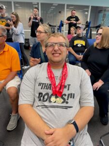 AJ is a 23-year-old with a kind heart and a love of helping other people. He’s active in his community, working during the summer at EQT Park with the Washington Wild Things, volunteering with the Special Olympics, training for powerlifting competitions and even bowling! He loves to care for his animals at home, including his chickens and his pet dog, Noel. AJ loves to share eggs from his chickens with his friends. Between his job, his leadership position with the Special Olympics and his