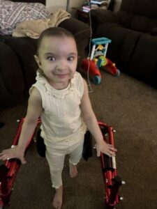 She attends weekly physical therapy, building strength and confidence with every session. And let’s just say her curiosity knows no bounds. She definitely keeps her mom, Beth, on her toes!
